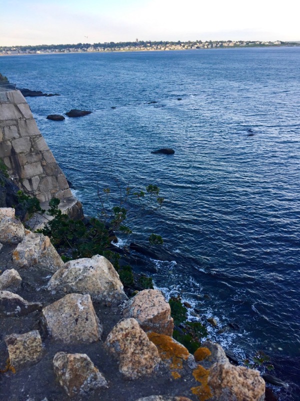 After checking the condo out, we drove toward Cliff Walk, which is a walking/running path directly on the coastline of cliffs. It spans pretty much the entire distance of the city, the mansions behind you, the bay in front of you. It is one of the most beautiful places I have ever seen in my life. We got out of our car near Salve Regina University (right there on the beautiful cliffs!) and just looked across the water. We got cold. And we were in sweaters or long sleeves. Maybe you would have to be from the South to understand how remarkable this was!