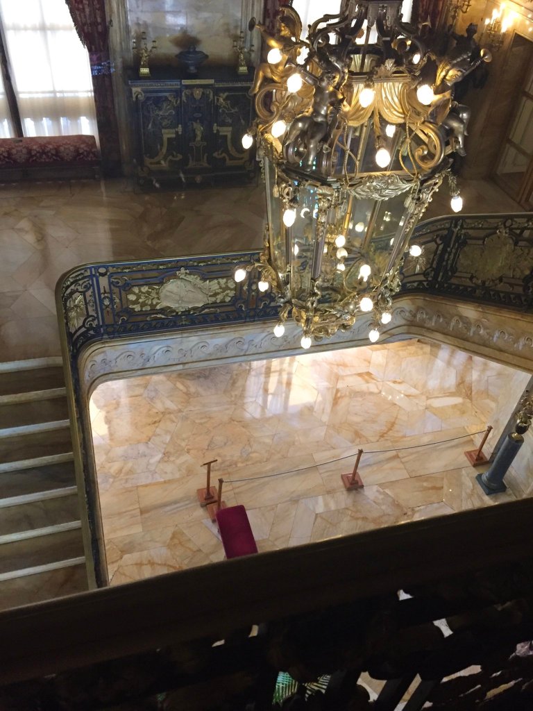 Anything you can put marble on, Alva tried it. Marble House was magnificent in the sense that you really got that feeling of European royalty. Which, I believe, was one of Alva’s aims, given that she ultimately arranged a marriage between her daughter and the Duke of Marlborough. This is the room where they most likely became engaged: