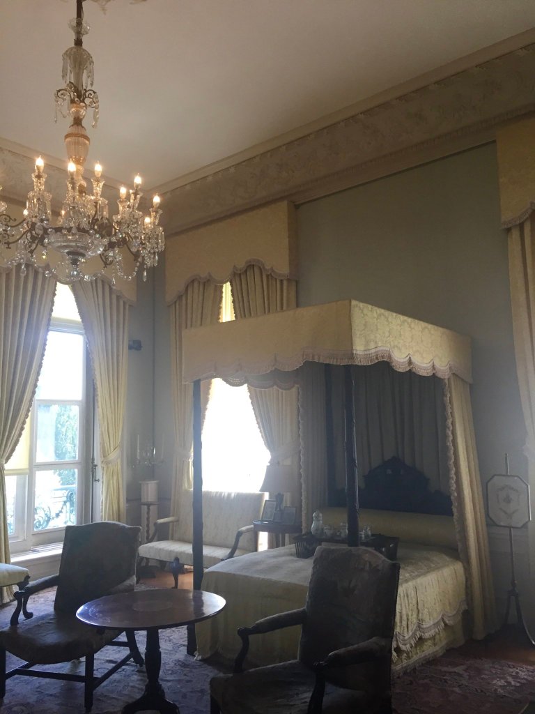 I seemed to have collected pictures of a lot of different bedrooms, so I’m thinking there may have been more rooms available for viewing at the house than at the other houses. Here are a few of the bedrooms. (Never mind my sister gazing dreamily at that fainting couch.)