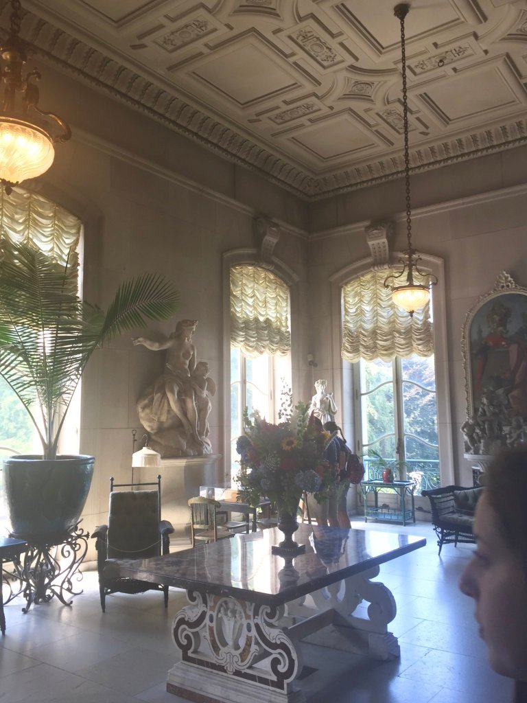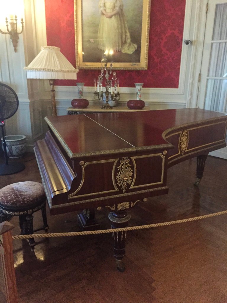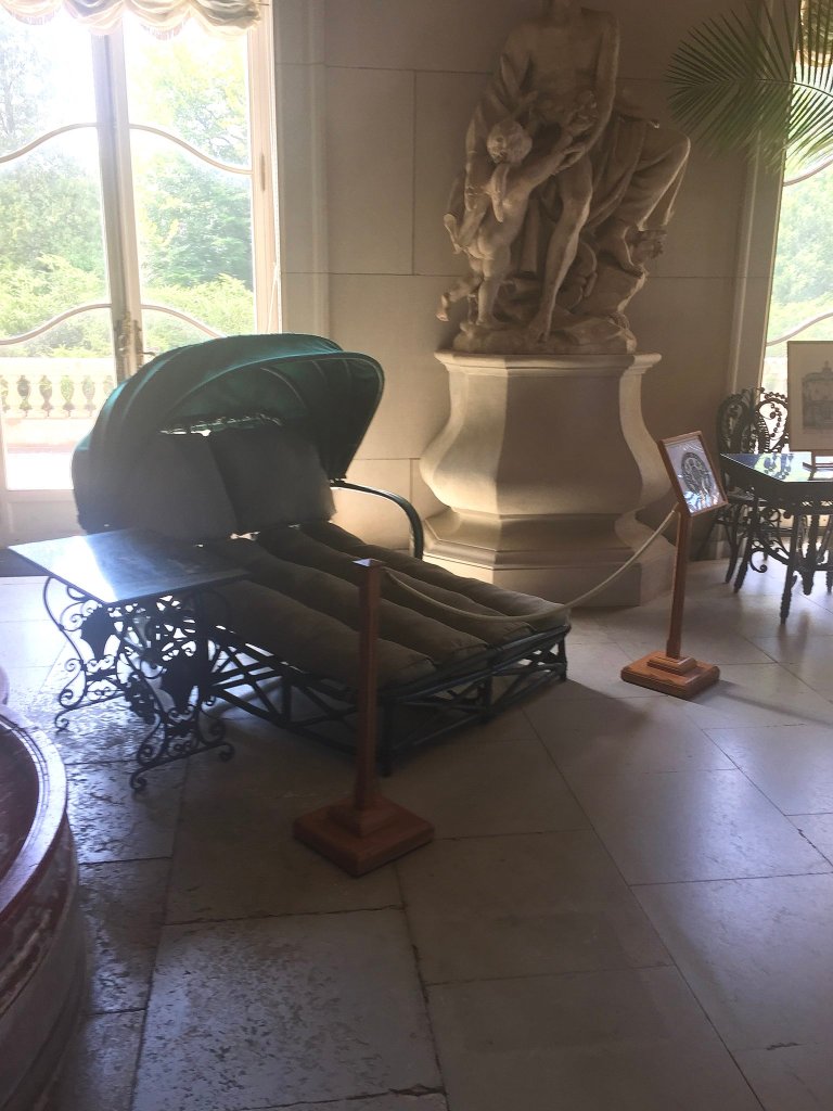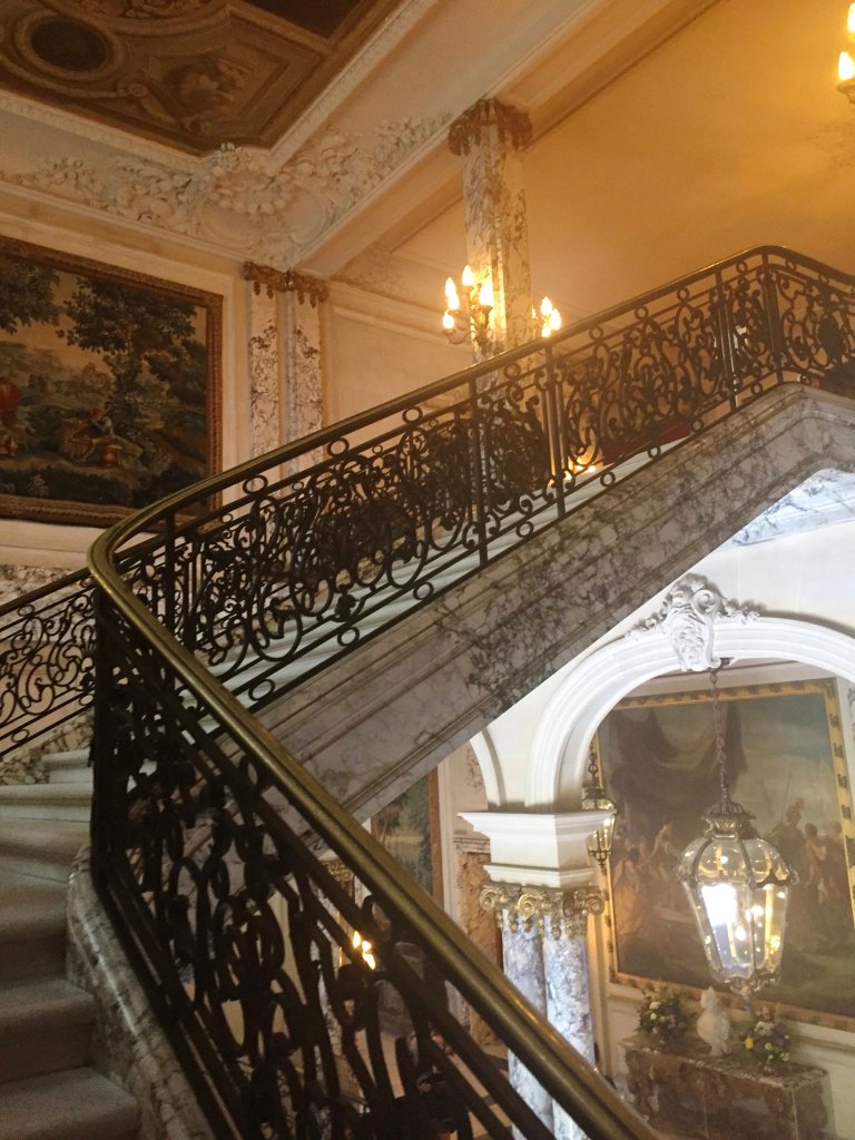 I really liked the scheme of the house: white, gold, marble, and black iron. The inspiration was the 18th Century Chateau d’Asnieres in France. Sarah and Edward Julius Berwind, of the coal fortune, built The Elms in 1901 so that they could host on a larger scale.