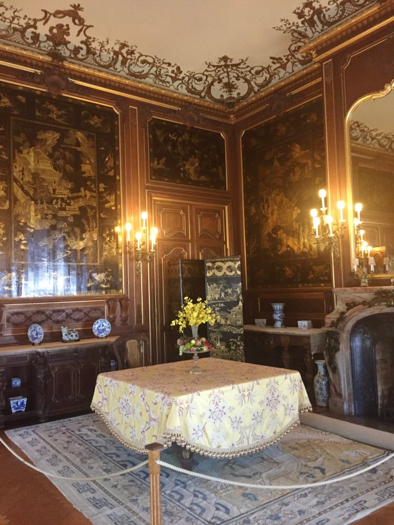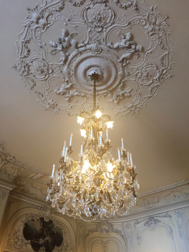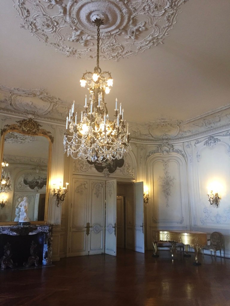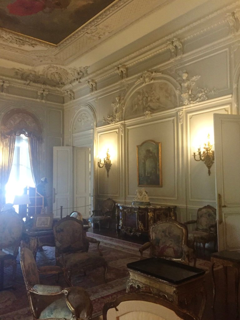 The inside was equally lovely. Here are a few of the rooms, which definitely give you the impression of French grandeur (except for the green library, which was more homey). Look at those gorgeous ceiling medallions!
