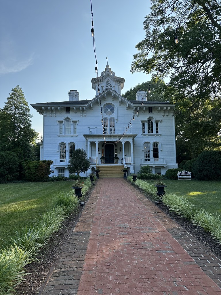 Following the tour, we had supper in Orange and then went to a B & B we had found called Mayhurst Inn. The inn is run by a couple with several children. The historic home was absolutely beautiful, and they had goats, which were very cute. My room was beautiful with high ceilings, great Magnolia wallpaper, and a relaxing environment. It was so peaceful there. In the morning, we were served peach French toast and maple bacon. We had been dieting, so this was absolute heaven. We loved the peach French toast so much that we tried it at Christmastime with the larger family (we didn’t get it quite right, but maybe next year).